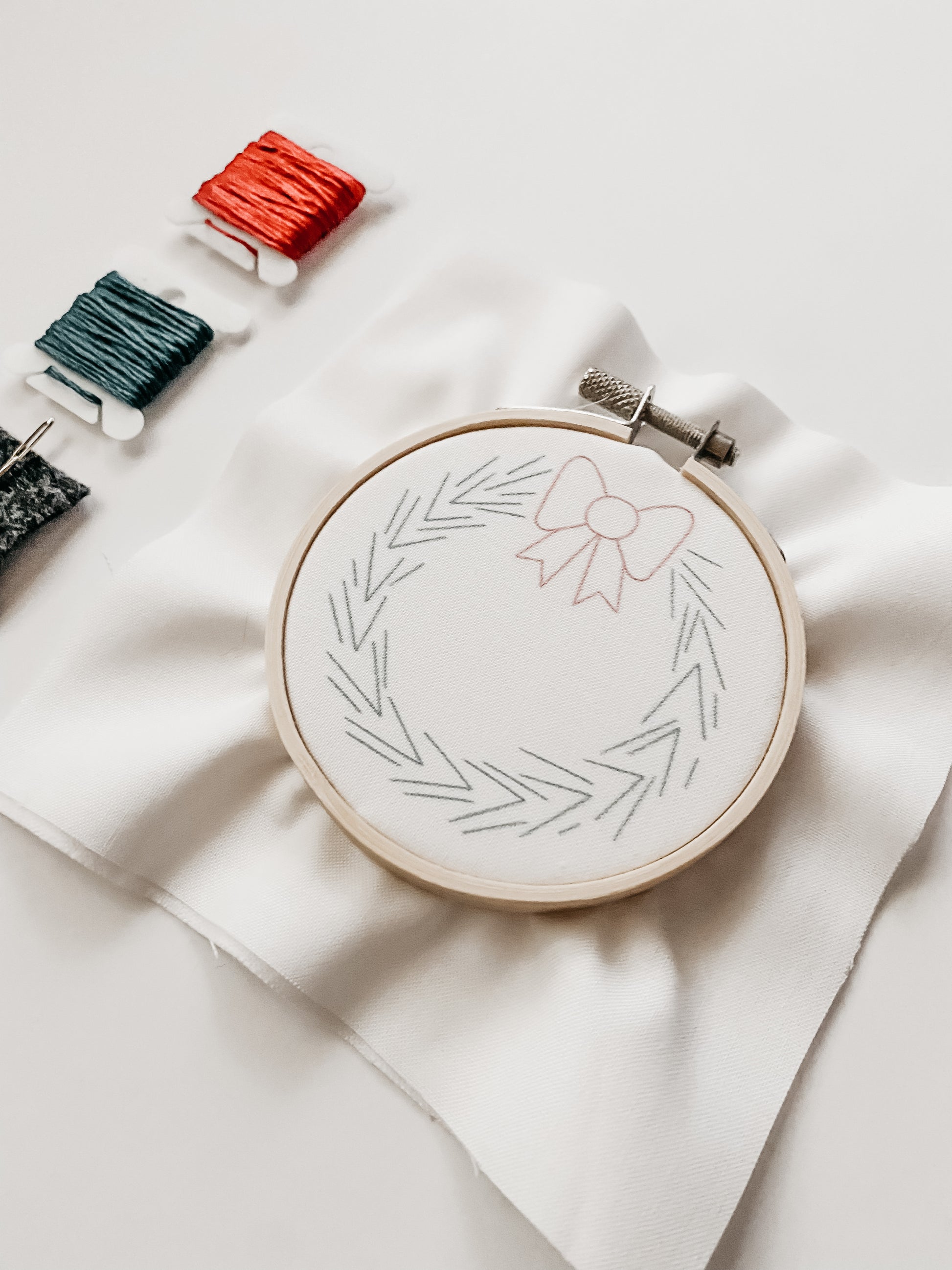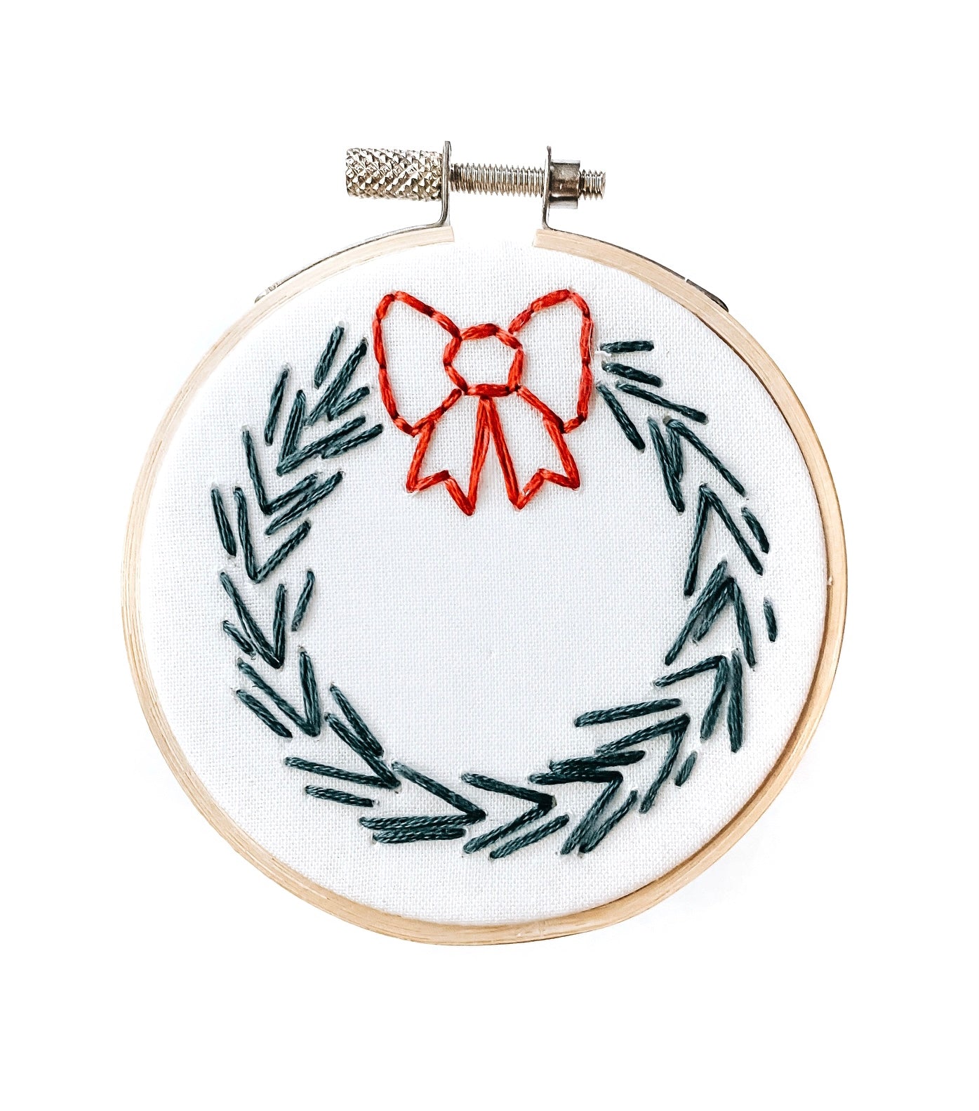 This embroidery kit includes every thing you need to create your own "Wreath" Christmas Ornament.